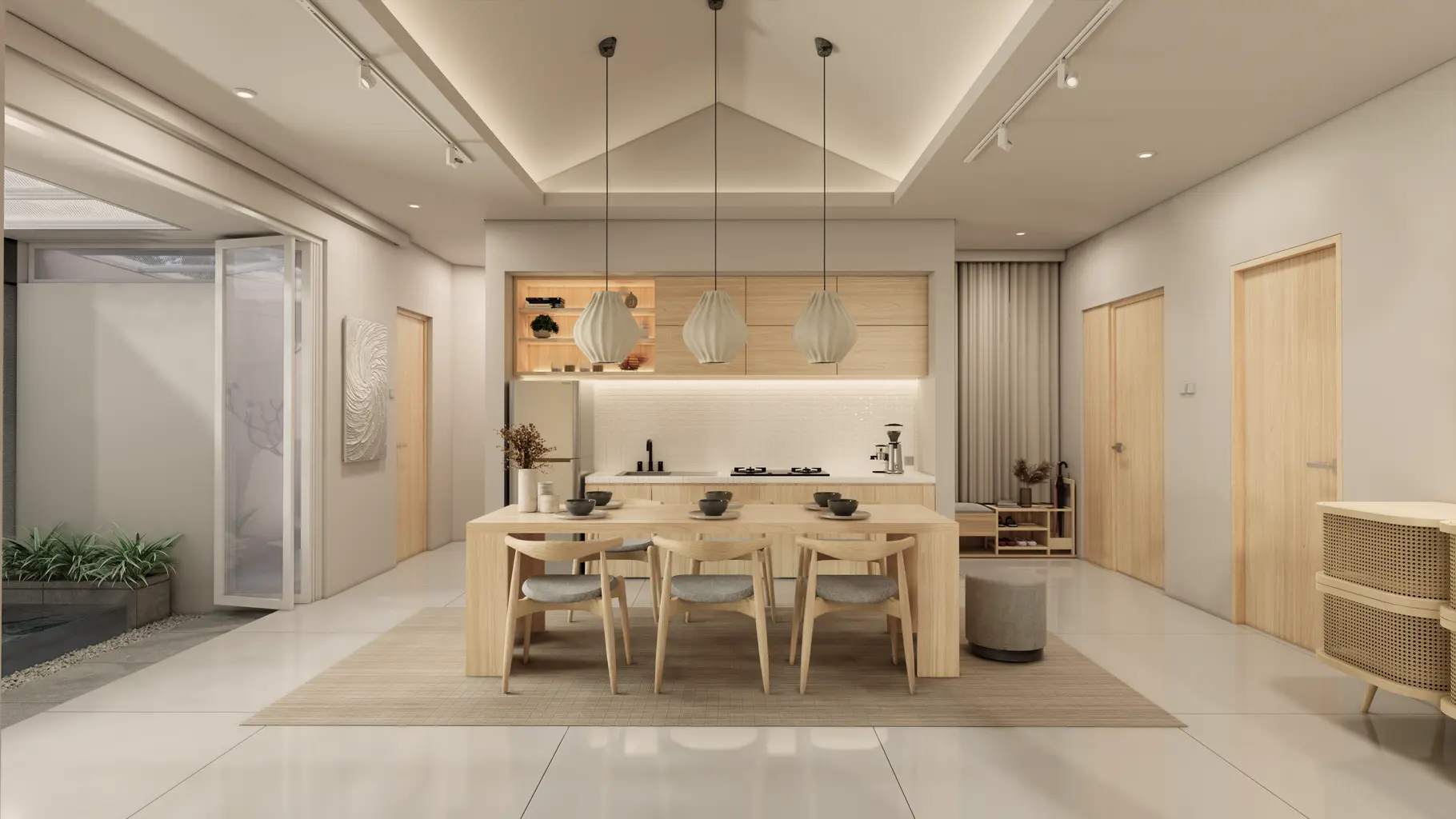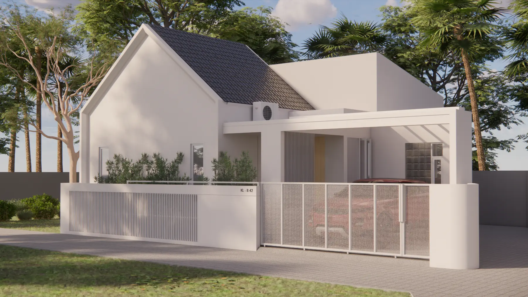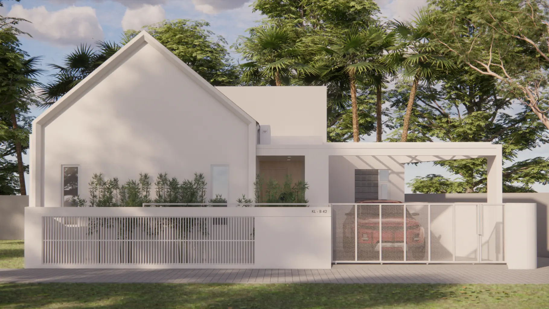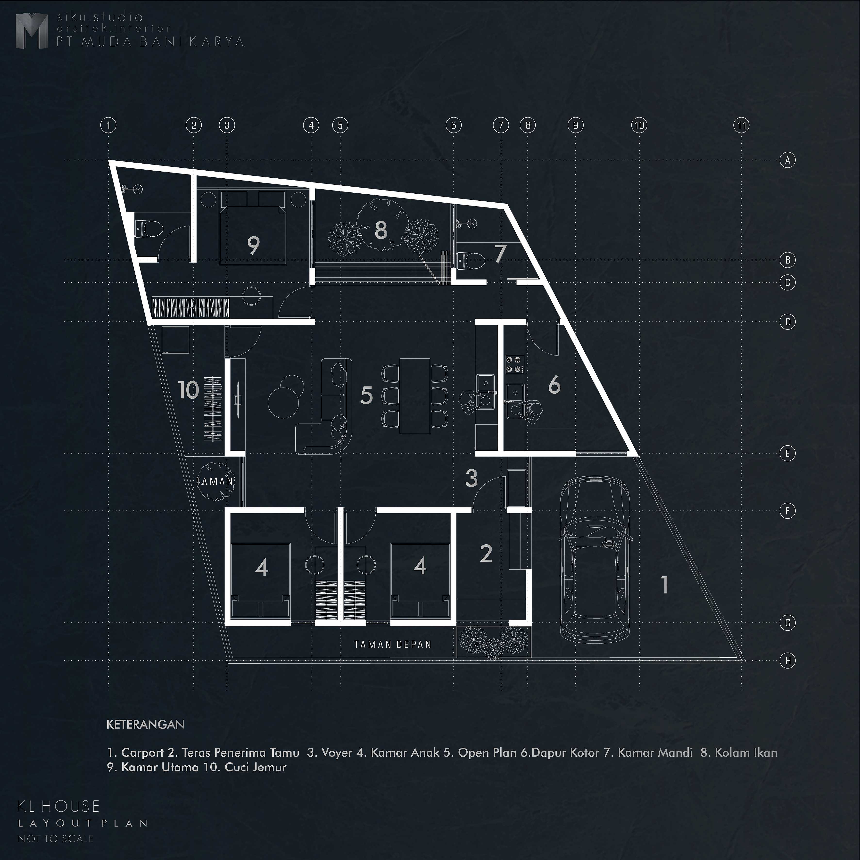 KL House is a residence designed for a small family with two children, located in a modest neighborhood. Embracing a tropical modern concept, KL House aims to harmoniously blend with its surroundings. The main challenge of this project was to effectively and ergonomically organize the layout within an asymmetrical plot of land. Centered around an open-plan area as the core of the building, the design seeks to utilize several otherwise “wasted” corner spaces by transforming them into gardens, sources of natural light and ventilation, as well as service areas with minimal activity. This approach ensures that the primary functions and needs of the residence remain optimal and efficient.